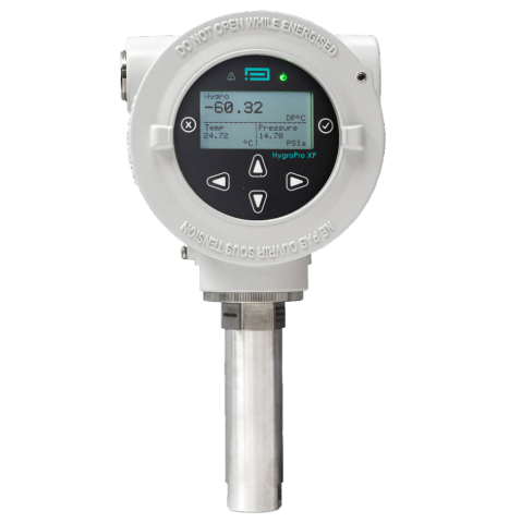 Using an industry-proven state-of-the-art aluminum oxide moisture sensor, the HygroPro XP features a built-in thermistor and optional pressure transducer to provide real-time measurement of the sample dew/frost point, temperature and pressure. This allows for the calculation and display of other moisture content parameters such as ppmv in gases, ppmw in liquids, pounds per million standard cubic feet in natural gas and more.